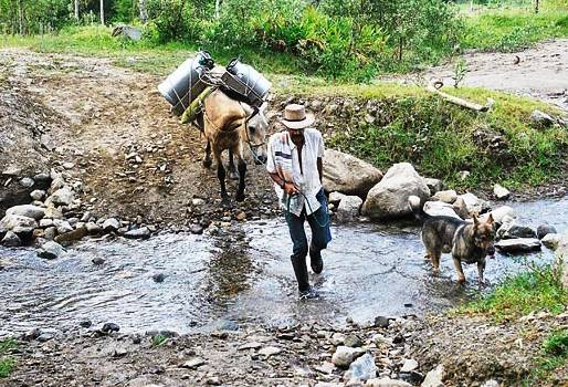 Nelson Arango, un productor lácteo que tiene ubicado su hato ganadero en la vereda Navarco, tenía que transportar la leche que produce en su finca en el lomo de un caballo, para poder venderla en otros municipios. (Lea: Flores y frutas de Quindío llegarían hasta Egipto y Líbano)