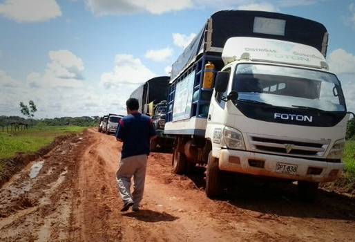 Hasta 4 días pueden demorarse en llegar los camiones transpordadores de víveres, insumos y ganado en pie al municipio de Calamar, por cuenta del deterioro de la vía que comunica la población con El Retorno. Esta situación ya completa 2 meses. (Lea: Campesinos bloquean carretera en Guaviare, por su pésimo estado)