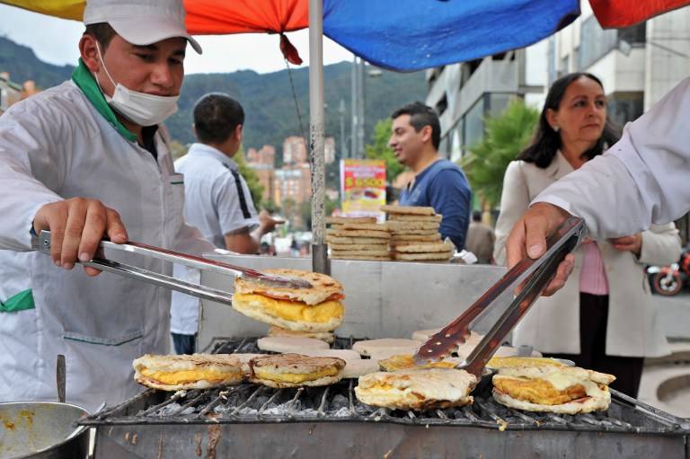 Como Hoyos, muchos se ganan la vida en Bogotá vendiendo desde café, agüitas aromáticas y jugos hasta arepas con huevo, milhojas y almojábanas caseras, coloridos yogures con cereales y todo tipo de frutas tropicales en esquinas, plazas y parques. (Lea: Las 12 frutas exóticas que los extranjeros prefieren de Colombia)