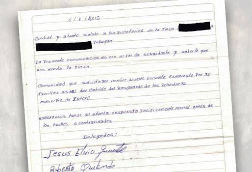 Usando cartas intimidantes, una comunidad indígena ubicada en el departamento está pidiéndoles a los empresarios que vendan sus propiedades, advirtiéndoles que en caso de no hacerlo deberán atenerse a las consecuencias. Con el afán de que el Gobierno compre las tierras prometidas por cuenta de la que consideran una deuda histórica que tiene Colombia con las comunidades indígenas del Cauca, algunas de estas organizaciones están apelando a diversos métodos de presión sobre quienes desde hace años han tenido fincas productivas en el departamento. (Lea: Nuevas invasiones deben soportar productores caucanos) “Hace un año y medio un grupo de indígenas llegó al predio con un solo fin: atemorizarnos”, cuenta Carlos Alberto Suárez*, dueño de una de las fincas a las que llegó una comunicación por parte de un grupo indígena y en la que le piden vender su terreno o atenerse a las consecuencias si decide no hacerlo. La comunicación que llegó a la propiedad de Suárez fue recibida por su mayordomo, a quien los indígenas le pidieron que transmitiera el mensaje a los dueños pronto porque su interés era tener ese territorio rápido, advirtiéndole de paso que si optaban por no vender ellos actuarían a las buenas o a las malas. (Lea. Acusan a indígenas de destrozos en el Cauca) “Lo que más me sorprende es que esta es la segunda vez que vienen hasta la finca. La primera no fue tan pacífica, llegaron a cortar pastos, quemarlos con glifosato y sembrar terror. Tras ese hecho fui hasta la Fiscalía y puse la denuncia respectiva. Después de ese episodio no habían vuelto”, reveló el empresario. Ante la nueva amenaza, el dueño, quien prefirió no suministrar el nombre de su predio para evitar un ataque contra su propiedad o la seguridad de sus empleados, se mostró extrañado ante el interés que tienen los indígenas sobre su explotación, ya que no está ubicada en una zona de tierras fértiles, como lo son aquellos predios dedicados a la caña; por el contrario, su predio está cerca a la capital del Cauca y su actividad es la lechería. (Lea: Indígenas Zenú invaden terrenos ganaderos en Córdoba) “Esta es una finca con más de 50 años de tradición en la que siempre nos hemos dedicado al sector lácteo. Acá han venido universidades y gremios con el fin de adelantar investigaciones por la calidad del producto que extraemos. A eso le sumamos recientemente un área de protección ambiental, con la que nos ha ido muy bien”, agregó el ganadero. El caso de Carlos Alberto Suárez no es el único que se ha presentado en el departamento y aunque las autoridades competentes están al tanto del actuar de las comunidades nativas caucanas, en la región hay temor de que las amenazas pasen a los hechos y se ponga en peligro las vidas de quienes protegen, administran e incluso viven en los predios. (Lea: Indígenas mantienen bloqueadas vías en el Cauca)