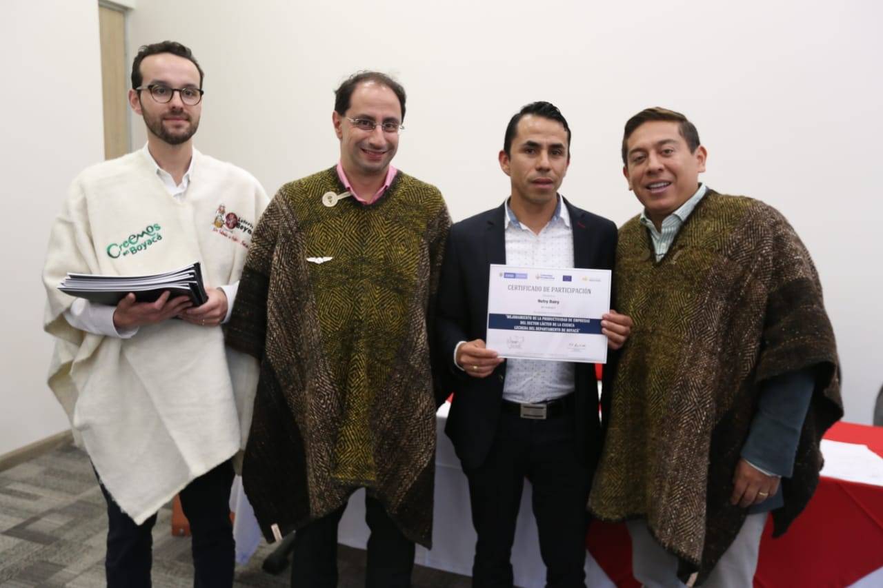 En el marco de la visita a Boyacá del ministro de Comercio, Industria y Turismo, José Manuel Restrepo y del presidente de Colombia Productiva, Camilo Fernández de Soto, acompañados del gobernador de Boyacá, Carlos Amaya y la Cámara de Comercio de Tunja; certificaron 19 medianas y pequeñas empresas del sector de derivados lácteos de Boyacá en el mejoramiento de la productividad, luego de un proceso que tardó 18 meses. (Lea: Leche y derivados también deberían venderse en escuelas y colegios)