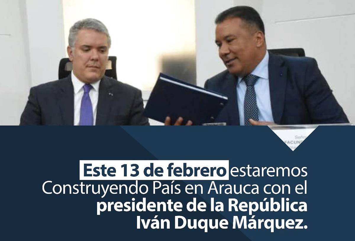 Este sábado, 13 de febrero, se llevará a cabo en Arauca, un encuentro entre el gobernador, Facundo Castillo, y el presidente de la República, Iván Duque, espacio en el que se hablarán de varias necesidades que tiene el departamento, sin dejar a un lado el aspecto productivo. (Lea: Fructífera reunión de ganaderos araucanos y Fedegán)