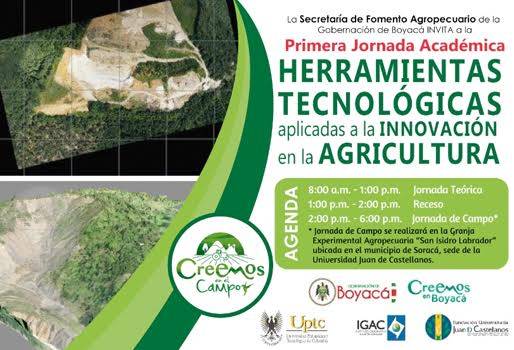 El evento, que viene siendo impulsado por la Secretaría de Fomento Agropecuario de la Gobernación, buscar dar a conocer la oferta tecnológica que hay en el mercado en favor del campo, lo que permitiría resolver el atraso que vive la región en la materia. La entrada es gratuita. En unión con la Universidad Pedagógica y Tecnológica de Colombia, UPTC, y la Fundación Universitaria Juan de Castellanos, la Secretaría de Fomento Agropecuario de Boyacá, adelantará este jueves 30 de junio la ‘I Jornada Académica de herramientas tecnológicas aplicadas a la innovación en la Agricultura’. (Lea: En Boyacá buscan reducir brechas tecnológicas de los paperos) El evento nace como respuesta al evidente atraso que hay en el sector agropecuario boyacense en relación con el uso de dispositivos novedosos que faciliten las actividades del campo, fomenten la competitividad y permitan que los productores sean más rentables. Sonia Natalia Vásquez Díaz, directora de Desarrollo Agropecuario de Boyacá, destacó la actividad, ya que en ella van a estar diversos expertos oriundos de la zona quienes serán los encargados de revelar las oportunidades que tiene el campo del centro del país una vez empiecen a usarse con mayor frecuencia las ayudas tecnológicas que están al alcance de los agricultores. “A veces se cree que en el departamento no hay las capacidades, las competencias o los conocimientos para pensar en avances tecnológicos, pero justamente por eso nos unimos con las instituciones académicas y el Instituto Geográfico Agustín Codazzi, para que se abra una discusión en el departamento al respecto y permitirles a los académicos boyacenses que muestren las potencialidades y uso de las innovaciones disponibles en el mercado”, explicó Vásquez Díaz. (Lea: Nuevas tecnologías serían claves para fortalecer el agro en Boyacá) Escuche las declaraciones de la funcionaria sobre la tecnología