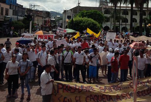 Aburridos con los perjudiciales efectos que ha dejado el paro agrario en Caquetá, los comerciantes de Florencia decidieron cerrar sus negocios y salir a las calles de la capital caqueteña a protestar contra el Gobierno Nacional y rechazar el poco interés que ha mostrado el Ejecutivo en levantar los bloqueos, que ya completan 17 días, dejando pérdidas en el departamento por más de $30 mil millones. (Lea: Aumentan pérdidas de los lecheros por cuenta del Paro Agarario)