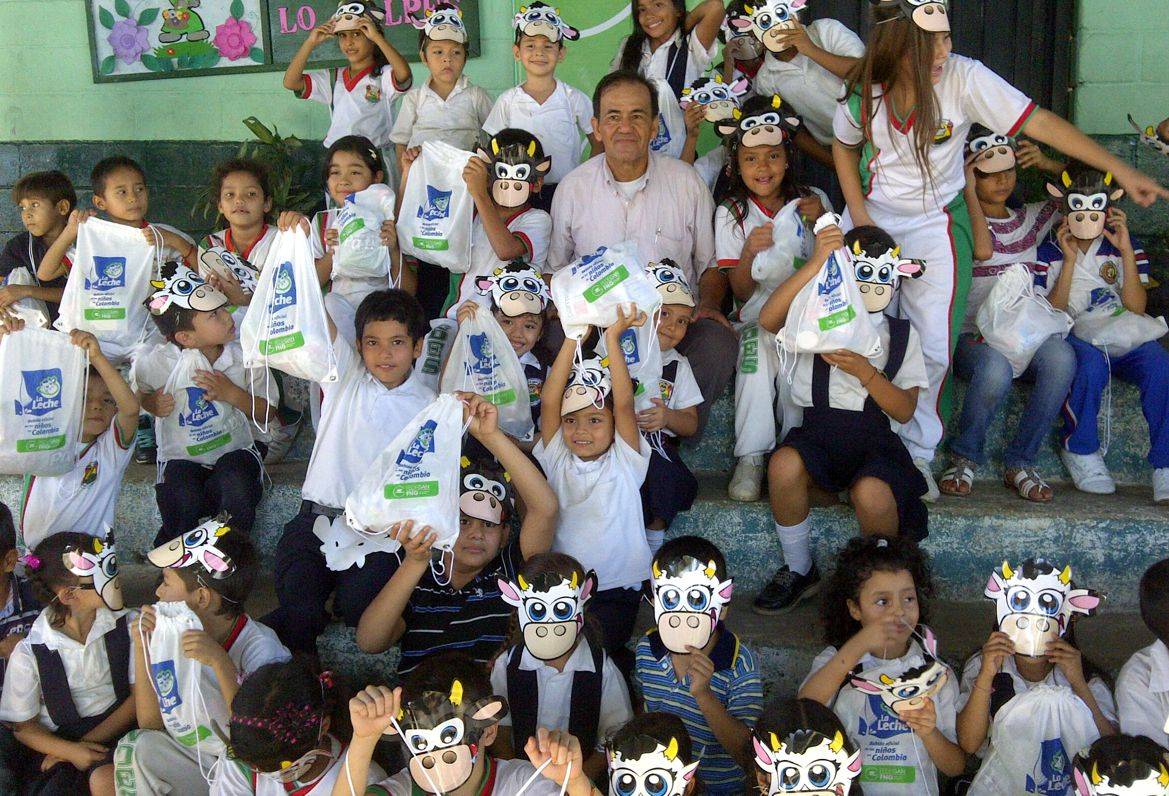 Durante las jornadas escolares a cada niño se le hizo entrega de una “tula lechera”, que contenía leche en polvo, leche entera liquida, arequipe, leche achocolatada, divertidas recetas con base en leche e incluso, una máscara con la figura de una vaca lechera multicolor.