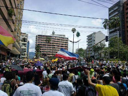 Desde las 9:00 a.m., más de 2mil personas se movilizaron desde la sede del Servicio Nacional de Aprendizaje, Sena, en Ibagué, hasta la Gobernación del departamento del Tolima, celebrando la V Marcha Carnaval, una movilización en contra de la minería en esta región del país.