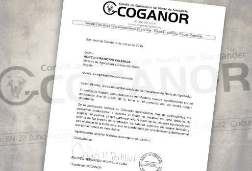 Ante esa determinación, el Comité de Ganaderos del departamento, Coganor, le envió una carta al jefe de la Cartera, Aurelio Iragorri Valencia, en la que le manifiestan su inconformismo sobre el hecho.