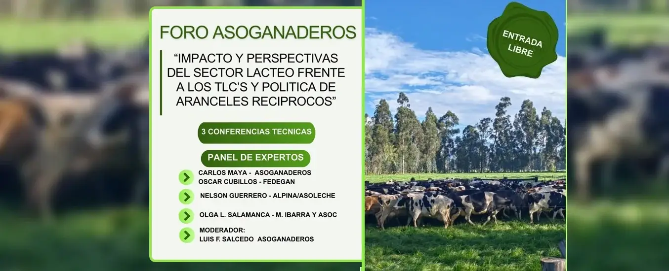 El foro de Asoganaderos en Tenjo (Cundinamarca) busca respuestas urgentes frente al impacto de los TLC tras una eventual desgravación total de importaciones lácteas y de la política arancelaria sobre toda la cadena. Expertos de Fedegán, Asoleche y la industria debatirán el panorama actual y lo que se viene.