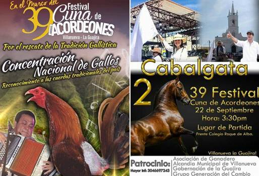 La versión 39 del evento que se realizará el próximo 21 al 23 de septiembre vendrá acompañada de la segunda edición de la cabalgata, organizada por la Asociación de Ganaderos y Agricultores de Villanueva. El reconocido festival que se celebra en esta población de La Guajira no solamente tendrá artistas de lujo, sino también actividades para los propietarios de caballos y los aficionados a la tradición gallística que acompañarán los conciertos del festival. Luis Guillermo Acosta Urbina, presidente de la Asociación de Ganaderos y Agricultores de Villanueva, habló sobre el desfile de caballos que se realizará el viernes 22 de septiembre. “El año pasado, nosotros organizamos una a 3 días de darse el festival. Entonces no tuvo el impacto por la falta de organización y tampoco asistieron muchos caballos”, confesó el dirigente. (Lea: Las actividades académicas se toman septiembre) Si bien el evento se llevó a cabo, la asociación le ha apuntado a tener una cabalgata mucho más grande y exitosa que la primera, con más ejemplares y un mayor número de asistentes. Así pues, esperan recibir la visita de jinetes y propietarios de distintos municipios de la región, de los departamentos de Cesar y La Guajira. Según Acosta, hay cerca de 70 equinos inscritos para disfrutar de este evento. “De Valledupar llegan 22 caballos de Riendas (la Asociación de Caballistas del Cesar), la organización que siempre participa con ejemplares muy bonitos. También hay un señor de Manaure que nos dijo que venía, y de Villanueva tenemos unos 30 inscritos”, señaló. Asimismo, la gallería Guere-Guere ha organizado una Concentración nacional de gallos por la tradición gallística, donde se hará el reconocimiento a las cuerdas tradicionales del país. (Lea: El vallenato colombiano es Patrimonio Inmaterial de la UNESCO) Ambos eventos se realizarán el segundo día del festival, el viernes 22 de septiembre. La concentración de gallos se hará en el colegio Hermenegildo Acosta, al frente del hotel Guasara, mientras que la cabalgata inicia a las 3 y media de la tarde en el colegio Roque de Alba. El festival contará con el apoyo preponderante de la Federación Colombiana de Ganaderos, Fedegán. El presidente ejecutivo de la entidad, José Félix Lafaurie Rivera, fue escogido en junio para ser el presidente de la 39 edición del festival. Por otro lado, la cabalgata ha contado el respaldo del secretario general de la Federación, Jaime Rafael Daza Almendrales, quien ha contribuido al desarrollo no solamente del evento, sino también de la asociación. (Columna: El patrimonio de los vallenatos) “El Dr. Jaime Daza siempre ha sido un pilar fundamental para nosotros, no solamente en esta sino en casi todas las actividades que hemos hecho. Estamos muy agradecimos y le seguiremos agradeciendo siempre esa colaboración”, comentó Acosta. El 39 festival Cuna de Acordeones rendirá homenaje a la carrera artística de Alfredo Gutiérrez y contará con la participación de músicos como Poncho Zuleta, Omar Geles, Jean Carlos Centeno, Peter Manjarrez y Juancho de la Espriella, entre otros. Para más información, consulte la página web del festival o el perfil en Twitter. Para la cabalgata, comuníquese al 3046697243, y para la concentración de gallos, a los teléfonos 3145475361 – 3116559154.