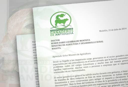 A través de una carta firmada por Daniel Cadavid Londoño, presidente del Comité, los ganaderos de la región antioqueña le expresaron al ministro de Agricultura, Rubén Darío Lizarralde, su preocupación e inconformismo por la decisión de evaluar la continuidad de Fedegán frente al Fondo Nacional del Ganado, gestión de la que se encuentra encargado hace más de 20 años.