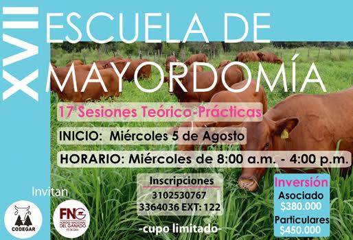 Con 17 módulos teórico-prácticos, un total de 25 productores bovinos en Risaralda podrán actualizar sus conocimientos para tener un predio más rentable. Con el objetivo claro de contribuir a mejorar la productividad y rentabilidad de las empresas, y valorar y cualificar el capital humano vinculado al sector, el Fondo Nacional del Ganado, FNG, y la Cooperativa de Ganaderos y Agricultores de Risaralda, Codegar, realizarán desde el próximo 5 de agosto la XVIII Escuela de Mayordomía. Alfonso Delgado Paz, gerente general de Codegar, aseguró que esta nueva edición del curso se realizará en 17 sesiones, impartidas en la misma cantidad de miércoles con un horario de 8 de la mañana a 4 de la tarde. (Lea: Cada vez es más difícil conseguir gente para trabajar en ganaderías) “Es elemental que los ganaderos y mayordomos de los predios bovinos en la región, y el país, estén recibiendo esta clase de talleres para que vayan adquiriendo más experiencia teórica y la puedan aplicar en los terrenos”, acotó Delgado Paz. Entre tanto, Johanna Echeverry De Los Ríos, profesional de Gestión de Proyectos Estratégicos en Pereira del Fondo Nacional del Ganado, FNG, informó que estos eventos son la oportunidad idónea para que el sector bovino en la región de Risaralda esté cada vez mejor preparado. (Lea: Sigue la formación académica de mayordomos en Caquetá) “Los módulos que se impartirán, se harán en bloque de 2 clases. Los temas que se abordarán son: ganadería, reproducción, sanidad, alimentación, sanidad, administración, toma de información y saluda ocupacional”, señaló Echeverry De Los Ríos. Asimismo, la funcionaria del FNG aseveró que para que el curso tenga un mejor manejo de grupo y unas óptimas jornadas prácticas en campo, solo se realizará con un cupo tope de 25 productores ganaderos. (Lea: Fedegán, Sena y Asogauca capacitarán a 700 ganaderos) “Por eso hacemos desde ya la convocatoria, porque tendremos pocos cupos. Queremos que los productores estén muy bien capacitados y tengan buenas bases para hacer lo que están haciendo. Es una formación completa para tener una visión más amplia de lo que es una empresa ganadera”, ultimó Johanna Echeverry. Las inscripciones se realizan por medio del número móvil 310 253 0767.