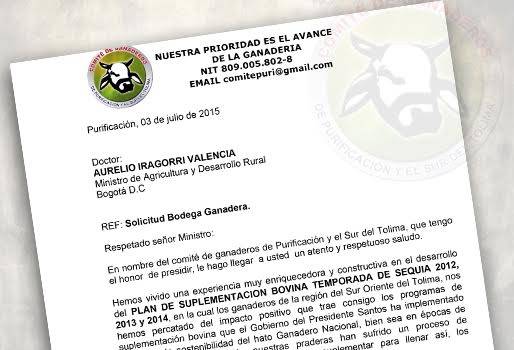 El presidente del Comité de Ganaderos de Purificación y el sur del Tolima, Manuel Jesús Moscoso Florián, le pidió apoyo al ministro de Agricultura, Aurelio Iragorri Valencia, para seguir desarrollando el programa de suplementación bovina.