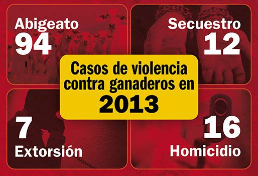 El Observatorio de Fundagán dio a conocer las cifras consolidadas de 2013 que revelan que aunque la extorsión, el homicidio y el secuestro disminuyeron en el sector bovino, el robo de semovientes tiende al alza.