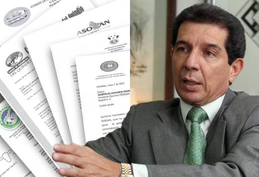 De todos los rincones de Colombia llegaron cartas apoyando la labor que a favor del sector ha adelantado José Félix Lafaurie, frente a la Federación Colombiana de Ganaderos, Fedegán, a quien de paso defienden de los ataques recibidos en días pasados por parte del ministro de Agricultura, Juan Camilo Restrepo, por el manejo dado a los recursos del Fondo Nacional del Ganado, FNG.