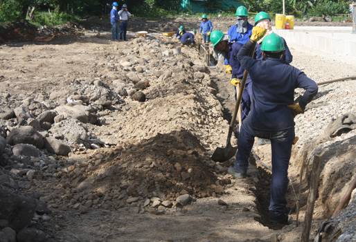 Luego de haber establecido una placa de concreto de 4 mil libras por pulgada cuadrada, ahora se trabaja en la construcción de un sistema que drenará las aguas lluvias hacia unas cajas recolectoras y se revestirá el talud adyacente con una placa de concreto de aproximadamente 7 centímetros de espesor.