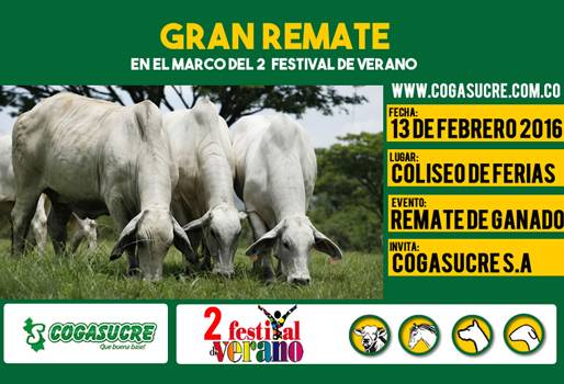 De otro lado, la Comercializadora de Ganado de Sucre, Cogasucre, realizará un gran remate a las 4 de la tarde. La directora comercial Virginia Herazo Payares explicó que se venderán bovinos doble propósito y puros con registro, con el objeto de estimular el negocio ganadero. “En este momento la economía está muy colapsada, todas las transacciones están estancadas, entonces es una forma de abrir una ventanita para el negocio, para estimular la cría de ganado que está en vía de extinción”, afirmó Herazo Payares. (Lea: Transacciones por más de $360 millones dejó la Feria de Sincelejo) Según la directora comercial, el negocio pecuario es inestable, sobre todo en esta época del año. Los precios tienden a bajar porque los productores no cuentan con suficiente alimento para sus semovientes y deciden descargar las fincas. Por su parte, la directora ejecutiva de Corfasucre invitó a todos los interesados a participar de la muestra y del remate, y del Festival de Verano. “Estamos haciendo la invitación a todas las personas a que nos acompañen en este evento. Es un preámbulo para las ferias de mayo y de agosto, que son las 2 ferias grandes que tenemos aquí en el departamento”, indicó Enamorado Álvarez. También aseguró que el verano ha afectado la realización del evento, porque varias ganaderías que participaron en la anterior versión se abstuvieron de hacerlo en esta ocasión. (Lea: Coliseo de ferias de Sincelejo se quedó pequeño) Además, no cuentan con ningún apoyo gubernamental ni empresarial, pues todo el evento es una iniciativa privada de Corfasucre y Cogasucre. “Este evento lo hacemos con aportes de los mismos socios, a pesar de que este evento tiene el costo de una feria grado B o grado A”, agregó. La segunda versión del Festival de Verano se realizará este fin de semana en Sincelejo y la entrada es totalmente gratis. Para mayor información sobre el remate o la muestra bovina, puede ingresar a la página cogasucre.com.co o llamar al número 310 6550450.