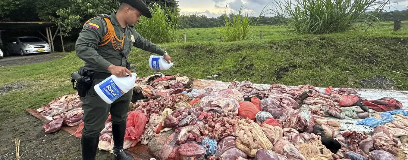 La Policía de Carabineros decomisó 1.930 kilos de carne y subproductos cárnicos transportados sin cadena de frío ni registro sanitario cerca de Popayán. Las autoridades presumen que el cargamento es, al parecer, producto del abigeato y procedieron a su inmediata destrucción.