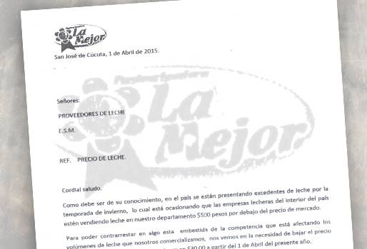 La decisión fue adoptada por la empresa La Mejor, ante el exceso del lácteo que hay en el departamento, lo que los obligó a vender los excedentes al Caribe colombiano. La determinación no cayó bien entre los ganaderos. En una carta, la Pasteurizadora La Mejor, la cual recoge la leche a las asociaciones ganaderas de Norte de Santander, dio a conocer la decisión de disminuir en $30 el valor pagado por el litro de leche a los productores. La medida que empezó a regir a partir del pasado primero de abril, fue determinada ante los excedentes del lácteo que tienen y que los ha obligado a buscar socios en el Caribe colombiano para que compren el producto restante. (Lea la carta enviada por La Mejor) Esa situación ha generado un incremento en los costos de transporte, los cuales venían siendo asumidos por la compañía, pero que por ahora son insostenibles, razón por la que bajaron el precio que le pagan a los empresarios para equilibrar esa situación. Camilo Villamizar, director de fomento pecuario de La Mejor, en diálogo con CONtexto Ganadero sostuvo que la medida es temporal mientras se normaliza la producción de leche en el departamento. Además, defendió la determinación ya que a su juicio era preferible bajar en $30 el litro a dejar de recoger cerca de 60 mil litros que compran diariamente. (Lea: A ganaderos en Cauca les pagan $20 menos por litro de leche) “Reconocemos que es una decisión compleja porque afecta a un nutrido grupo de ganaderos que hacen parte de las cooperativas o asociaciones, pero esperamos que sea algo temporal y el precio se normalice una vez salgamos de los inventarios que tenemos”, reseñó Villamizar. Ante la medida, este diario habló con 2 productores quienes manifestaron su descontento, ya que desde el próximo 15 de abril notarán las consecuencias en la reducción de los $30. Fernando Londoño, empresario que tiene una lechería en Chinacota y que produce alrededor de 600 litros diarios, aseguró que dejará de percibir cerca de $700 mil mensuales, mientras se sostenga la disminución en el precio. (Lea: Crece preocupación de ganaderos caucanos por crisis lechera) “A nosotros nos estaban pagando $800 por litro ya que nuestra finca está certificada como libre de brucelosis, pero ahora la leche quedará en $770, por lo que las pérdidas son considerables”, expresó el productor. En tanto, Jesús Delgado, ganadero ubicado en Durania y quien representa a los empresarios de la región, aseguró que siempre que hay sobreproducción de leche el precio cae, pero cuando hay escasez la tarifa no sufre ningún tipo de reajuste, lo que desestimula la actividad. (Lea: “El pronóstico del precio de la leche es que baje a $600”: senador Vélez) “En 2010, cuando hubo un exceso de leche nos redujeron el precio pagado al productor. Luego en el invierno de 2011 que se presentó carencia del lácteo no ajustaron la tarifa sino que se mantuvo igual y ahora volvemos a sufrir con el precio y esta vez el motivo es el verano y la sobreproducción. Esperamos que la medida no sea por mucho tiempo”, reseñó el ganadero.