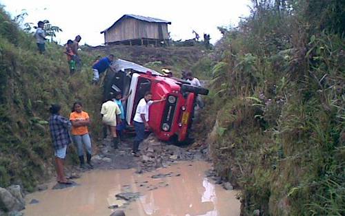 La escena se repite frecuentemente. Los vehículos quedan atrapados en lodazales, y la comunidad con cuerdas o empujando, ayudan a sacar todo tipo de medio de transporte, para permitirles a los usuarios llegar a su destino final. (Movilidad en el campo)