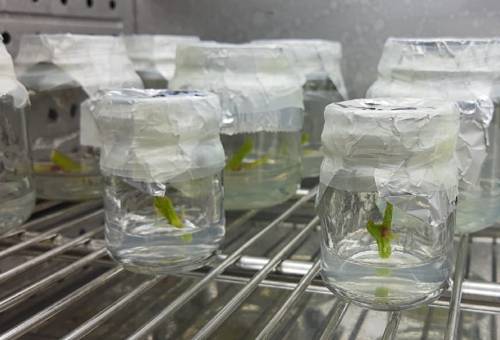 Según el investigador máster del Centro de Investigación, Germán Aguilera, “el beneficio de multiplicar las plantas in vitro es que no estarán infectadas de enfermedades sistémicas (que se propagan mediante el método convencional de estaca) y que tengamos una producción a gran escala, garantizando la identidad genética. Actualmente, en este proyecto estamos trabajando para validar el protocolo de desinfección del material”.