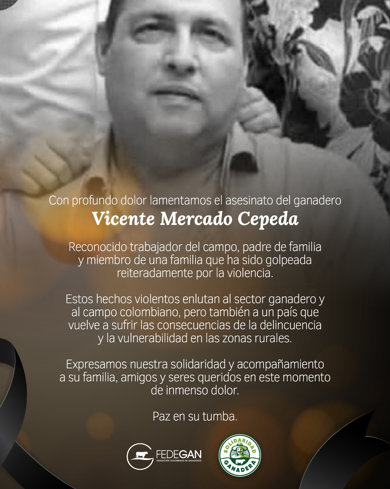 La Federación Colombiana de Ganaderos (Fedegán) rechazó el crimen con el siguiente mensaje: