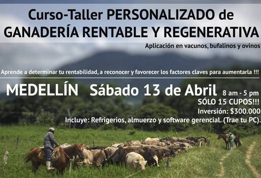 Aún quedan cupos para el curso que se realizará este sábado 13 de abril en Medellín. El costo de la inscripción es de $300 mil, que incluye almuerzo, refrigerios y software, por lo cual debe llevar computador portátil. (Lea: Inscríbase a tiempo a los cursos de ganadería regenerativa de Asodoble)