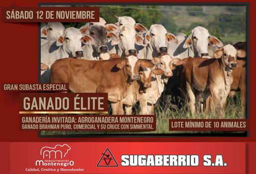 Para esta ocasión, Sugaberrío S.A. entidad organizadora de la actividad tendrá como invitada a la ganadería Agroganadera Montenegro para subastar ganado Brahman Puro, Comercial y el cruce con Simmental. El evento se realizará este sábado 12 de noviembre y la entrada será gratuita.
