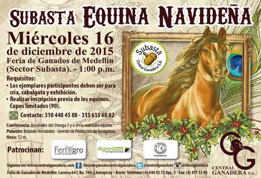 El evento, que es organizado por la Central Ganadera de la región, tiene como objetivo exhibir los mejores ejemplares equinos para cría y cabalgata. La subasta se realizará el próximo 16 de diciembre y el punto de encuentro será la Feria de Ganados de la capital antioqueña. En el marco de la puja se realizará una interesante jornada académica sobre las bondades del Omega 3 y 6 en la nutrición equina a cargo de Rolando Hernández, gerente de producción de Tecnigrasas, a la que podrán asistir todos los participantes del encuentro. De acuerdo con Jorge Mario Escobar Calle, gerente general de la Central Ganadera S.A de Medellín, con el ánimo de promover las cabalgatas familiares, muy comunes en la época decembrina, se realizará la última subasta equina, la cual busca exhibir las mejores especies para que las personas puedan adquirir los animales para sus comitivas. (Lea: Grado de consanguinidad de equinos se podrá reducir en Colombia) “Queremos que las cabalgatas entre amigos y familia continúen. Que los antioqueños conozcan los caminos y las regiones a caballo. Trabajamos para poder brindarles a los interesados animales que tengan excelentes condiciones para este tipo de dinámicas”, explicó Escobar. Por otro lado el gerente general de la Central Ganadera S.A aseveró que los animales que participan en la subasta pasan por un proceso de selección y depuración muy estricto, pues se busca que los equinos que hagan parte de la puja sean los mejores. “Hacemos una inspección médico veterinaria previa al evento. Realizamos una revisión de la parte de genética y reproductiva de las hembras y si tiene un registro lo anunciamos como parte del valor agregado. También solicitamos la prueba de anemia infecciosa equina, para comprobar que los animales estén libres de esta enfermedad”, indicó el representante de la empresa organizadora. (Lea: 5 mitos sobre los desparasitantes equinos) La Central Ganadera realiza subastas de ganado todos los martes con hembras y machos de gran calidad y hace dos subastas especiales, una equina para la época de la feria de las flores con la cual se busca aprovechar la costumbre de la gente en salir a cabalgatas y ahora se pretende institucionalizar la navideña para fomentar estas actividades culturales a fin de año. Según Kelly Grisales Hoyos, coordinadora administrativa de la feria de ganados de la central, esta va a ser la segunda subasta especial y la última del año a la que se han inscrito 97 equinos para el gran evento. “Los requisitos para que los proveedores pudieran inscribir sus animales son que estos debían ser de cría, cabalgata o de exhibición. La idea es darle una categoría un poco más alta a la subasta con equinos con excelentes cualidades y no con ejemplares de descarte”, comentó Grisales. (Lea: Conozca las 5 razas equinas más representativas de Colombia) La subasta cuenta con el apoyo y patrocinio de diferentes almacenes agropecuarios entre ellos Talabartería La Castor, AgroColanta, FeriAgro, Monsanto y Autoamérica. La conferencia académica iniciará a las 12 pm y la puja a la 1 pm.