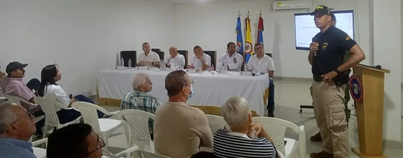 En agosto a cabo una trascendental reunión en las instalaciones del Batallón de Infanteria de Marina N° 13 en Malagana, Bolívar, con el objetivo de articular esfuerzos entre la Fuerza Pública, las Alcaldías Municipales y los gremios productivos, especialmente ganaderos y palmicultores, de los municipios de Mahates, Arjona, El Guamo y San Juan de Nepomuceno.