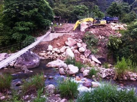 El Teniente Coronel Alexander González, comandante del Batallón de Operaciones Especiales No. 90 ‘Teniente Coronel Oscar Uribe Peralta’, informó que en esta zona “el puente anterior fue arrasado por una creciente de lluvias el año pasado. Ahora, en su lugar, se encuentra un puente colgante que solo sirve como paso peatonal y no está en la capacidad de soportar el paso de vehículos pesados con productos agrícolas como plátano, café, yuca y naranja. El ganado, por ejemplo, se hace imposible de movilizar por esa ruta en estos momentos”.