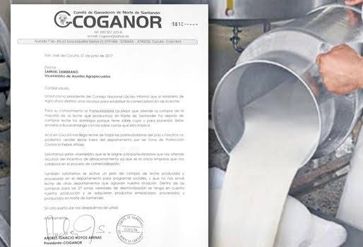 El gremio que representa a los ganaderos del departamento, envió 2 comunicaciones tanto al viceministro de Asuntos Agropecuarios como al Gobernador, en donde expresa la dificultad que viven por la no recolección de la leche los días domingo y la necesidad de un plan para combatir esa crisis. La situación que atraviesan los lecheros nacionales tiende a complicarse con el pasar de los días. La Cámara Gremial de la Leche de la Federación Colombiana de Ganaderos, Fedegán, ha preparado una comunicación dirigida al presidente de la República, en donde exponen la dimensión de la crisis y algunas propuestas de solución desde la orilla de los productores. (Columna: ¡No aguantamos más!: productores de leche) En la misiva se indican los pormenores de la problemática en materia de rentabilidad, competitividad y supervivencia misma del negocio, caracterizado por los bajos precios al productor, los altos costos de producción, los impactos del cambio climático, la posición dominante de la industria láctea y unas crecientes importaciones de leches y lactosueros a bajos precios. Sumada a esa carta, el Comité de Ganaderos de Norte de Santander, Coganor, le envió el pasado miércoles una comunicación al viceministro de Asuntos Agropecuarios, Samuel Zambrano, en donde le manifiesta su preocupación por cuenta de lo que viene ocurriendo con los lecheros en esa región del país y en donde le pide incluir al departamento en las posibles soluciones propuestas por el Ministerio de Agricultura. El texto firmado por Andrés Hoyos Arenas, presidente de Coganor, revela que la Pasteurizadora La Mejor que es la que opera en la región, ha dejado de recoger la leche el día domingo ante el sobrecupo que tiene del producto, por lo que para pulverizarla debe llevarla hasta Bucaramanga, generando unos sobrecostos no planeados. (Lea: En Quindío preocupa bajo precio de leche e informalidad) A eso debe agregarse que a Cúcuta están llegando leches provenientes de todas las pasteurizadoras del país, pero los ganaderos de Norte de Santander no tienen la oportunidad de venderla por fuera del departamento por ser Zona de Protección contra la Fiebre Aftosa. “Solicitamos, señor viceministro, que se le asigne a la pasteurizadora que nos atiende recursos del incentivo de almacenamiento, ya que es la única empresa que colabora con el proceso de comercialización”, argumenta Hoyos Arenas. Pero las cartas de Coganor no pararon ahí, el gremio también envió una misiva al gobernador de Norte de Santander, William Villamizar, en la que no solo le hace un recuento de la crisis láctea que vive el departamento, sino que le piden coherencia con las políticas planteadas dentro de su plan de gobierno y que hasta el momento no está ayudando en nada a los lecheros. (Lea: Lecheros enviarán carta al presidente Santos a raíz de la crisis del sector) “A pesar que el eslogan de su Gobierno es ‘Un Norte productivo para todos’, no podemos serlo si nuestra producción no se puede comercializar, ya que el plan de compras para la alimentación escolar se traen leches y productos lácteos procesados y empacados en otros departamentos”, critica el dirigente. El presidente de Coganor le pide al mandatario de los nortesantandereanos gestionar los recursos prometidos por la cartera de agricultura, para permitir la estabilización de la comercialización y facilitar la compra del lácteo producido.