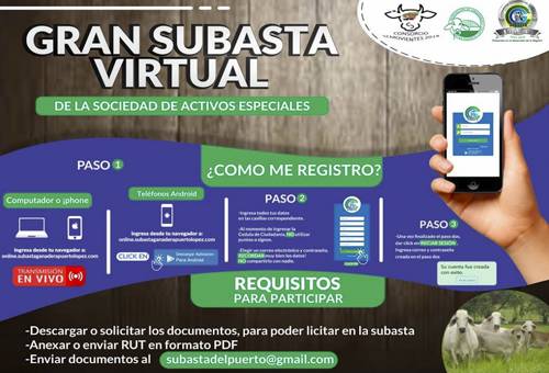 Este viernes 17 de julio, la Compañía Ganadera del Meta y la Asociación de Ganaderos de Puerto López realizarán un remate virtual con 200 semovientes de la Sociedad de Activos Especiales (SAE) y, por primera vez, animales de otras ganaderías participantes.