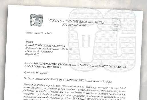A las peticiones hechas al Ministerio de Agricultura y Desarrollo Rural desde distintos lugares de la geografía nacional se suma ahora la de los ganaderos de este departamento. Luceni Muñoz Bermeo, directora ejecutiva del Comité de Ganaderos del Huila, firmó la carta que el pasado 17 de junio le enviaron los productores al ministro de Agricultura, Aurelio Iragorri Valencia en la que le solicitan recursos para implementar el programa de suplementación bovina. (Lea: Piden bodega de alimentos al MinAgricultura desde Antioquia) “El Comité de Ganaderos del Huila, en representación de los ganaderos del departamento, muy amablemente solicita el apoyo del Ministerio de Agricultura y Desarrollo Rural para que en la presente vigencia le asigne recursos al programa de la referencia”, apunta Muñoz en la comunicación. La dirigente describe en la misiva que los sectores agropecuario y ganadero vienen sufriendo afectaciones por factores de tipo económico y medio ambiental , que relaciona con el cambio climático, y a los que responsabiliza de las elevadas pérdidas. Muñoz Bermeo le recuerda al ministro que los programas de alimentación subsidiada de años anteriores han resultado muy positivos. De igual manera, en la carta se describe que en la región se deben tener en cuenta “los altos costos que le representan a los productores adquirir suplementos alimenticios en estas épocas críticas, lo que afecta su rentabilidad y sistemas de producción”. (Lea: Productores en Arauca piden bodega de alimentos ante ola invernal) La carta enviada desde esta región del país se une a las que en el mismo sentido han sido remitidas por la Asociación de Ganaderos y Agricultores del Bajo Cauca y Alto San Jorge, Asociación de Ganaderos de Santa Ana, la Asociación de Ganaderos del Urabá Grande, El Comité de Ganaderos de Chiriguaná, la Asociación de Ganaderos del San Jorge, laFederación de Ganaderos de Boyacá y la Asociación de Ganaderos del Valle de Ubaté, entre otras.
