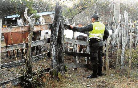 De acuerdo con las autoridades, varios productores bovinos del municipio han sido azotados por el abigeato, flagelo que durante los últimos meses ha aumentado en la región. Ante esto, los policiales vienen liderando una lucha frontal que les ayude a reducir los índices. (Fedegán, Policía y Fundagán buscan dar fin al abigeato).