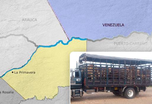 También dijo que otra de las problemáticas que afecta al sector ganadero local es la entrada de ganado desde Venezuela. Aseguró que por un lado el tema sanitario se pone en riego, porque según él, en el país vecino no son muy rigurosos con el control de enfermedades, y por otro, el precio al que venden los animales que ingresan es menor que el que se maneja localmente, lo que perjudica la competitividad. El líder de la asociación de ganaderos de La Primavera expresó que un animal en pie que traen desde Venezuela lo pueden estar vendiendo entre $400 y $500 mil, mientras que uno local puede costar entre $800 mil y un millón, una diferencia considerable que afecta el comercio y el bolsillo de los ganaderos del municipio y del departamento. Agregó que los animales entran a Colombia por Puerto Carreño por una región conocida como Casuarito, una pequeña población que únicamente el río Orinoco separa de Venezuela. Anotó que los contrabandistas solo deben atravesar el afluente y ya el ganado está en territorio nacional. José Silvestre Bernal, profesional en La Primavera en Gestión Productiva y Salud Animal del Fondo Nacional del Ganado, FNG, aseveró que estas son problemáticas que preocupan al sector y que para ser manejadas se necesita un mayor control tanto en la frontera como en el campo. (Lea: Falta de control y precio del dólar estimulan el contrabando) “La frontera es muy extensa y escasamente hay 4 puestos de Policía, lo que hace muy difícil que haya un control total, pues los contrabandistas aprovechan cualquier trocha o paso para ingresar el ganado de forma ilegal. Incluso, hemos escuchado que han retenido ganado en Bogotá que provenía desde Vichada y había sido traído de contrabando desde Venezuela, entonces esta es una situación que merece especial atención”, aseveró Silvestre. En cuanto al tema de abigeato, anotó que se viene adelantando una iniciativa de comunicación con las autoridades, con la cual a partir de la instalación de antenas repetidoras en las fincas los ganaderos pueden reportar cualquier novedad. La idea es quetodos los productores se unan a esta acción. El profesional del FNG manifestó que ya se han realizado capturas de algunos cabecillas de bandas dedicadas a estas prácticas ilegales y que hay otros que están en investigación. A pesar de que los miembros de sector ganadero de La Primavera reconocen la labor que está realizando la Policía y el Ejército, manifiestan que no es suficiente y solicitan mejores controles a lo largo de la frontera para evitar el ingreso de bovinos desde Venezuela y un mayor acompañamiento en la zona rural para reducir los robos, que a pesar de ser de pocos animales, van desestabilizando la economía de los pequeños productores de la región. (Lea: Carne y queso de contrabando estarían llegando a Bogotá)