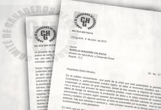 El Comité de Ganaderos de Chiriguaná le envió una carta al ministro de Agricultura, Aurelio Iragorri Valencia, en la que le reitera su confianza en la buena gestión y le pide ayuda de cara al acceso a crédito, alimentos para los animales y medidas frente al precio de la leche.