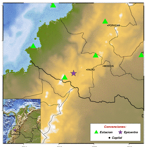 Según reportes de Ingeominas, el sismo de 6,9 grados en la escala de Ritcher se sintió este sábado en regiones de Antioquia, Nariño, Putumayo, Cauca, Valle del Cauca, Eje Cafetero y Cundinamarca. El movimiento se registró a una profundidad de 186 kms y tuvo una duración cercana a 60 segundos.