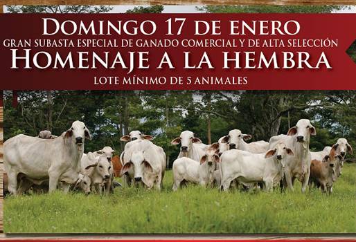 La Subasta Ganadera de Puerto Berrío, Sugaberrío, realizará este domingo 17 de enero una subasta dedicarla a las hembras. Más de 750 reses se comercializarán ese día en la plaza de ferias de Cimitarra, Santander. Fáber Urrego, gerente comercial de Sugaberrío, anunció la Gran Subasta Especial de Ganado Comercial y de Alta Selección 'Homenaje a la hembra', que se realiza junto con el Comité de Ganaderos de Cimitarra, Cogaci. “Esta es la primera subasta especial del año. Vamos a sacar hembras de primera calidad de todas las razas y cruces”, explicó Urrego. (Lea: Sugaberrío comercializó más de 51 mil 700 bovinos en 2015) Se subastará ganado de cruces F1, F2 y tipo leche de las razas Brahman blanco y rojo, principalmente, pero también habrá bovinos F1 Simmental, F1 Holstein x Brahman, Girolando, y cruces con Blanco Orejinegro, BON, y Romosinuano. Participan 12 o 13 ganaderías de departamentos como Cesar, Santander y Antioquia. Cada ganadería venderá entre uno y 2 lotes, que son de mínimo 5 animales. Para ese día se espera la asistencia de 250 personas, algunas de las cuales llegan del Valle del Cauca y de los Llanos Orientales “El Magdalena medio se ha destacado por tener dominancia de ganado Brahman y se reconoce como una zona donde se produce ganado de buena calidad”, aseguró. (Lea: Cimitarra celebra subasta especial en homenaje a la cría) De hecho, Sugaberrío se ha esforzado por realizar eventos que devuelvan a la hembra y a la cría la importancia que se merecen. También realizan un homenaje a la cría en el municipio santandereano, porque muchos ganaderos de la zona utilizan las novillas para producir carne. “Ellos están más enfocados en cebar porque han visto un mejor rendimiento en peso y en menos tiempo, pues la hembra ha tenido un buen desarrollo durante la ceba”, señaló Óscar Fajardo, director comercial de Sugaberrío en Cimitarra. (Lea: 5 ventajas de comercializar ganado en subastas certificadas) También recomendó mejorar el hato reteniendo las terneras de mejor producción para reemplazar a las vacas adultas que se volvieron poco rentables. Además, aconsejó comprar buenos toros o seguir un programa de mejoramiento genético con inseminación artificial. “Nosotros le apostamos a la cría, que en estos momentos juega un papel importante en el país porque el inventario ganadero ha bajado a nivel nacional y creemos que hay que fortalecer con buena genética el pie de cría que tenemos para seguir produciendo terneros de excelente calidad”, indicó Urrego. (Lea: Subastarán lo mejor del ganado Simmental x Brahman en Puerto Berrío) En cuanto al precio, el gerente comercial afirmó que el valor del kilo está en los mismos niveles que los del año pasado y que el verano no ha influido, porque esa zona tiene la fortuna que aún caen lluvias, a diferencia del resto del país. En lo que va corrido de 2016, han caído alrededor de 250 milímetros de lluvia. Las inscripciones están abiertas para participar en la subasta, que comienza este domingo 17 de enero a las 2 de la tarde. Para mayor información, puede comunicarse al (034) 8335543 o 3178931590. También puede ingresar a la página en Internet: http://sugaberrio.com/
