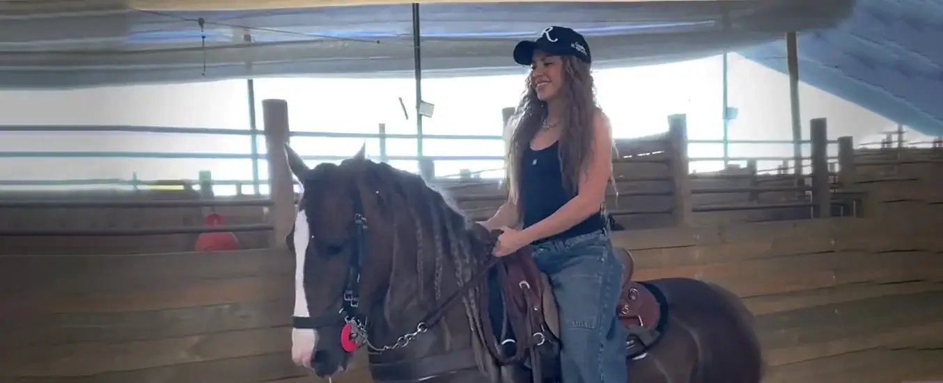 Las imágenes muestran a la intérprete de canciones como *“*Waka Waka” y “Suerte” con seguridad y gracia, mientras cabalga con soltura, sorprendiendo a muchos con su destreza como jinete.